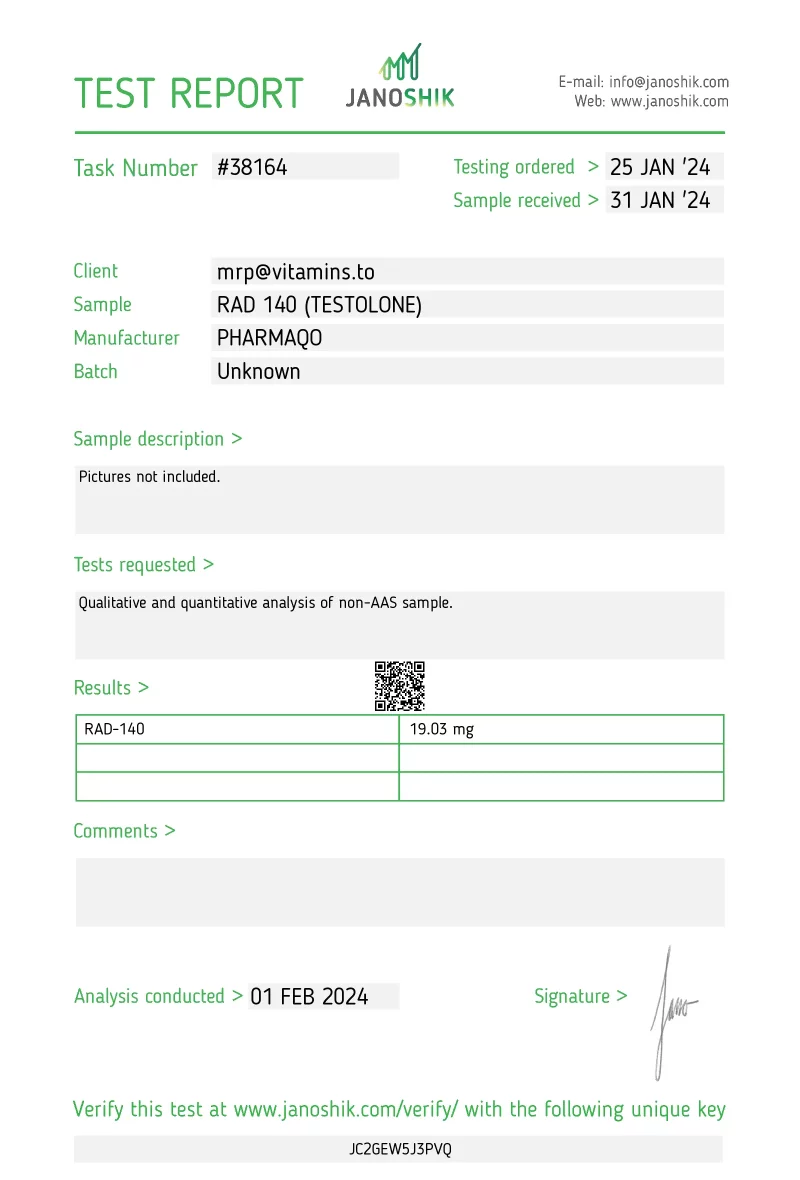 This product is strictly available for research and is not FDA-approved for human use. Consult a doctor before you take RAD 140 or any other SARM. Taking RAD 140 or another SARM improperly can lead to a host of side effects. The company at Pharmaqo Labs shall not accept any liability for its abuse or adverse impact due to its usage.